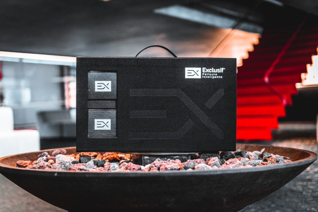 Nosso mostruário carrega a funcionalidade completa da película. Ao acionar a carga elétrica fornecida por uma bateria a película automaticamente ativa sua funcionalidade de transparecer ou não.